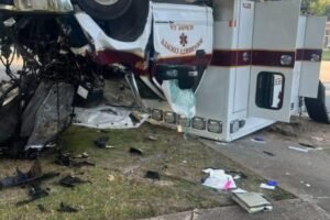 The sirens were already screaming when everything went wrong. Metal shrieked, glass burst, and a vehicle meant to save lives became a cage of twisted steel in a single, sickening…