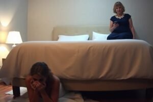 I held my breath, pressed flat against the cool hardwood floor beneath the enormous mahogany bed, barely stifling a laugh. The white wedding dress, which I still hadn’t changed out…