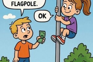 Boy: I’ll pay you 10 bucks to climb up the flagpole. Girl: ok. (climbs the flagpole) Girl: Mommy Mommy a boy paid me 10 bucks to climb the flagpole. Mom:…