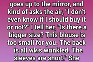 I’m standing near a fitting room. A woman walks out, goes up to the mirror, and kind of asks the air, “I don’t even know if I should buy it…