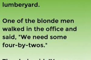 A couple of blonde men in a pickup truck drove into a lumberyard. One of the blonde men walked in the office and said, “We need some four-by-twos.” The clerk…
